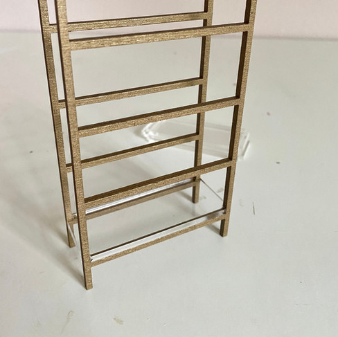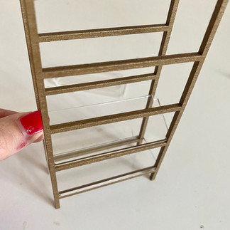 You can't go wrong with classic shelves to display your dollhouse treasures, and I love the modern take with the gold and glass of these shelves. I have the real life version of these exact shelves in Baylor's room and it looks great. It looks great in just about any room, and don't worry about the "glass" cutting your little one; it's just clear acrylic. You can customize it any way you want it to match the rest of your dollhouse. To purchase this DIY Kit, please click here. You can also order the assembled version from the same link. Let's get started with assembly.